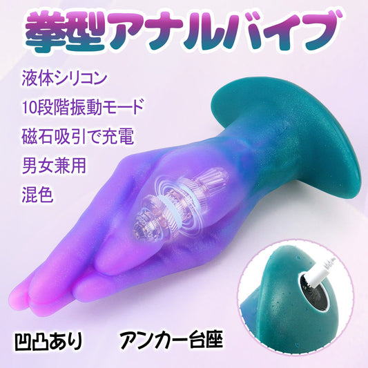TaRiss's 拳型アナルバイブ 10段階振動モード 凹凸あり 磁石吸引で充電 アンカー台座 液体シリコン