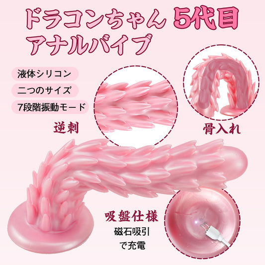 TaRiss's ドラコンちゃん5代目 アナルバイブ 逆刺付き 骨入れ 7段階振動モード 磁石吸引で充電 吸盤仕様 液体シリコン