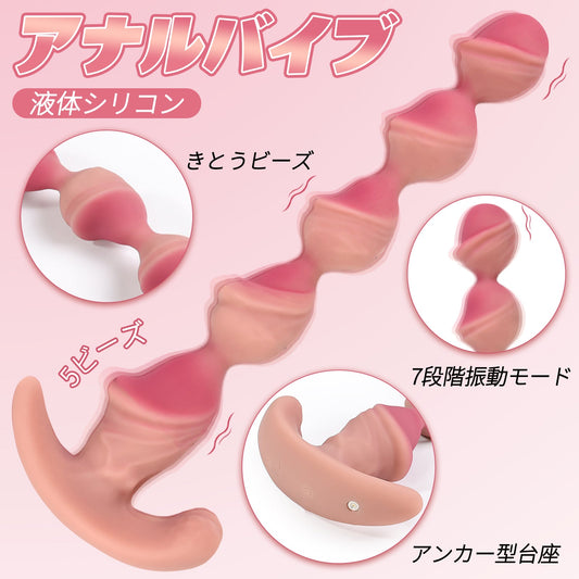 TaRiss's アナルバイブ きとうビーズ 5ビーズ 7段階振動モード アンカー型台座 液体シリコン