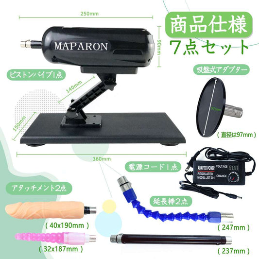 MAPARON 電動ピストン機 電動マシーン 6点セット 3XLR式 アタッチメント付き リモコン付き 21段階伸縮モード 角度とスピード調整可能 全自動 ブラック