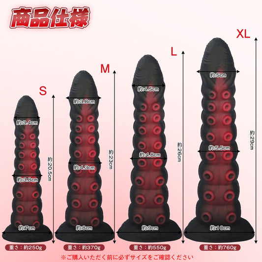 NIGHTLOOM 黒炎魔触 アナルプラグ 凹凸あり 触手 タコ シリコン製 吸盤付き 混色仕様 四つのサイズ