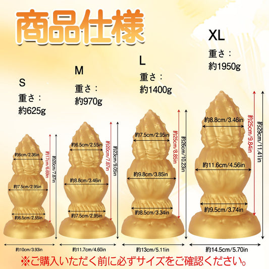 NIGHTLOOM アナルプラグ 凹凸あり 三段階刺激設計 つぼみ シリコン製 吸盤付き ゴールド 四つのサイズ