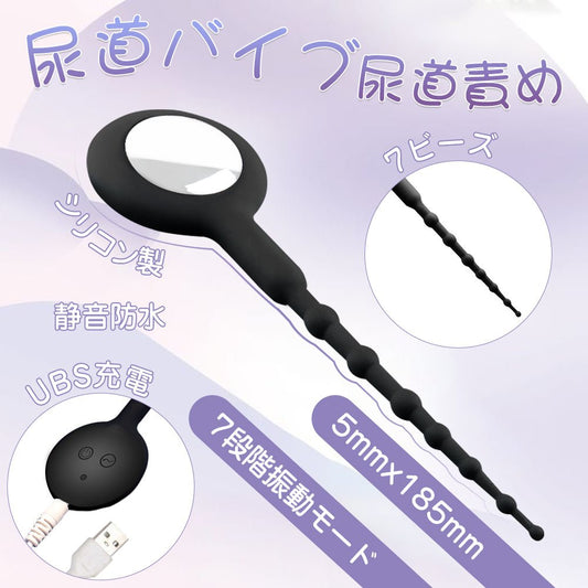 TaRiss's Urethral Vibrator, Urethral Beads, Urethral Plug, 7 Levels of Vibration Mode, 7 Beads, Quiet, Waterproof, Versatile, Silicone, Black